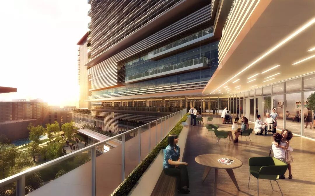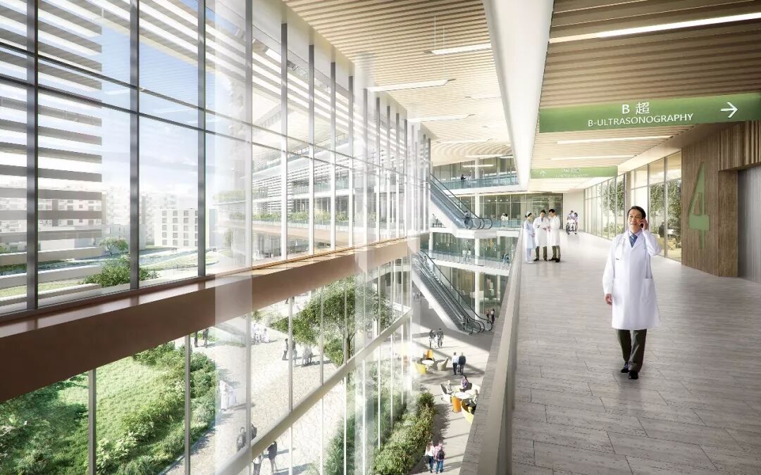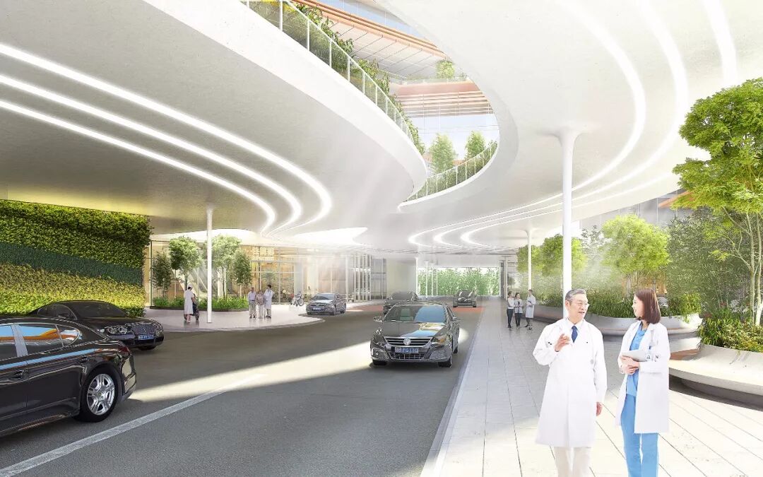 Perkins+Will中国区总经理吕羽表示:“我们的设计意图是使员工、访客与患者能在这些景观空间当中汇聚、放松或康复。通过这种方式,自然与健康才能相互联系起来,成为整个项目设计的核心主题。”