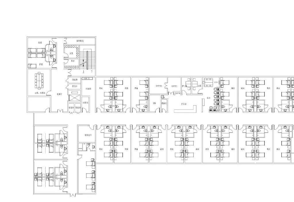 (2)为有效利用空间,把原北侧部分二人间改为三人间,保持平时病区的床位数。