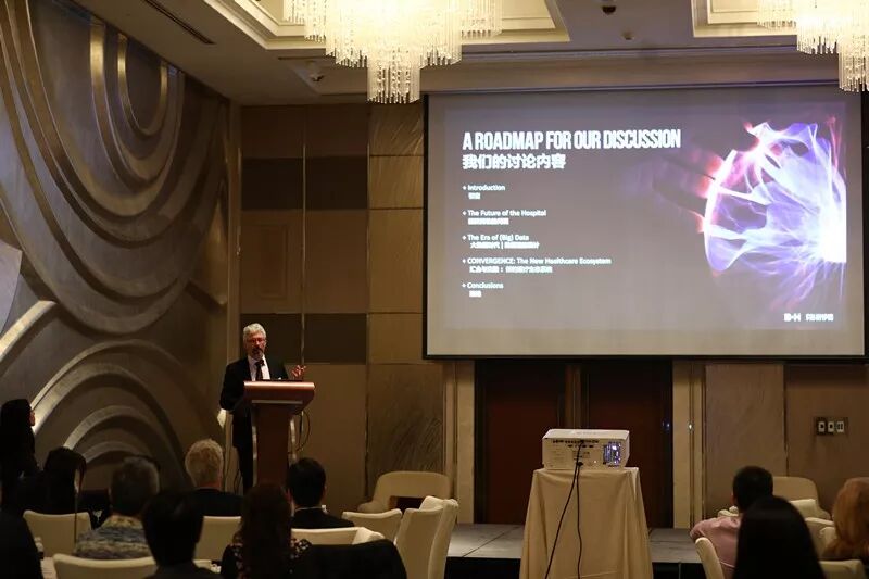 B+H北美、中东及北非地区医疗总监,合伙人Chris McQuillan随后展示了数据智能设计对未来医疗生态系统的影响。Chris回顾他过去25年的专业经验,包括对医疗设计、医疗行为学、生物医药研究、设施规划、功能规划以及项目可行性研究领域的广泛奉献,并分享了他在B+H医疗项目中融入跨学科知识、重新塑造患者体验的经验。