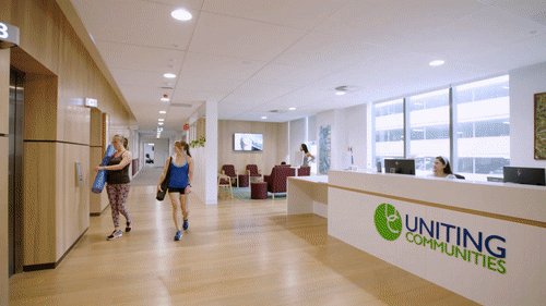 2-3 层则由业主主导,不仅带入其丰富的社区咨询和服务,同时设置办公总部,以全方位积极响应社区使用者的多样化需求。此外,供商用租赁的综合办公空间也旨在吸引更多的服务组织加入,以实现 Uniting Communities 的发展愿景和建立一个健康服务社区的承诺。
