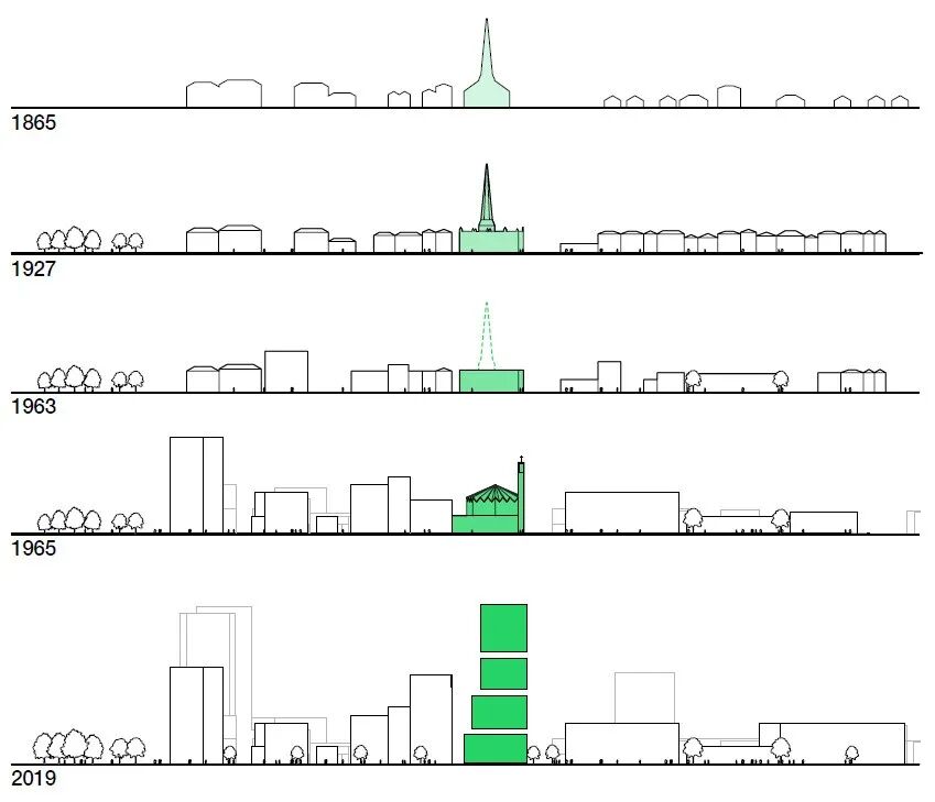 项目基地位于阿德莱德城市中央商务区的 Franklin 和 Pitt 街角,原为一处有着 150 多年历史的教堂遗址,由南澳大利亚非营利性组织 Uniting Communities 所有,该组织提供包括老年护理、残疾人士服务、家庭服务、青少年服务等在内的 90 多个不同维度的社会服务项目。