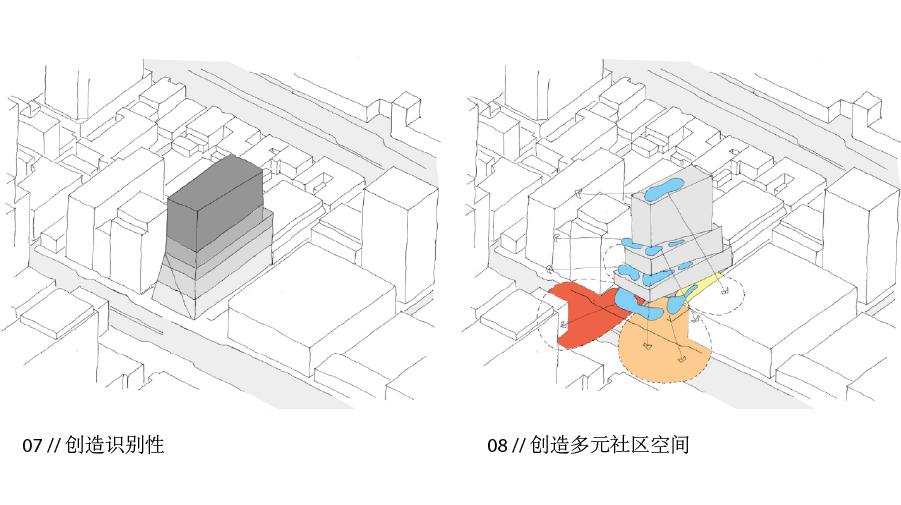 业主希望能够在新空间充分接入其多元的社区服务,满足不同受众多样的空间需求,提供一个动态活力的健康社区。因此项目之初,伍兹贝格团队就将 U City 作为一个“社会项目”来考虑,力求将设计、建造实体建筑物作为“社会干预”的手段,对周边社区产生积极影响。